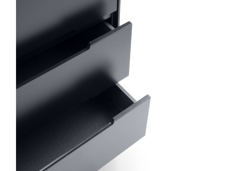 A stylish, retro-inspired bedside chest in a matt dark grey lacquered finish, with complementary tapered legs and recessed handles to provide easy opening. The sleek Scandinavian feel of The Alicia Chest fits beautifully with any bedroom décor.