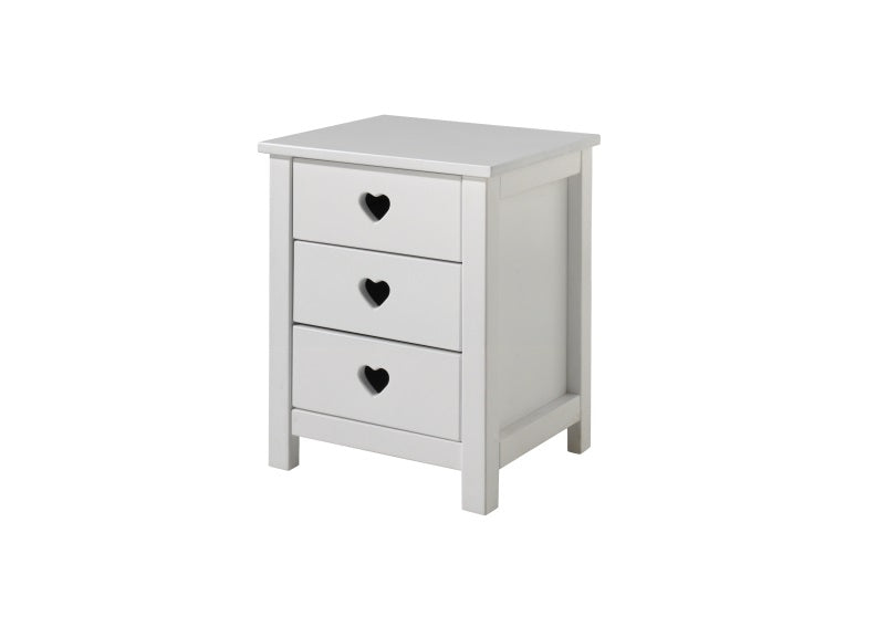 The Amori Three Drawer Bedside is made from lacquered pine & MDF board and is complete with amori love hearts. The Amori Bedroom Furniture Collection is a new love themed child's range from our new continental Europe based furniture supplier.