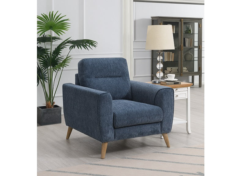 This stylish armchair may be purchased in blue or grey fabric colours-view images and select your colour choice from menu.