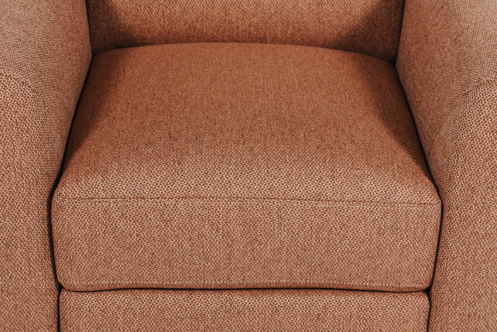 Archie Pushback Chair in Sage combines comfort and durability with a manual recliner, metal frame, and water-repellent fabric. Featuring sleek plastic legs, this chair offers both style and practicality for any room.