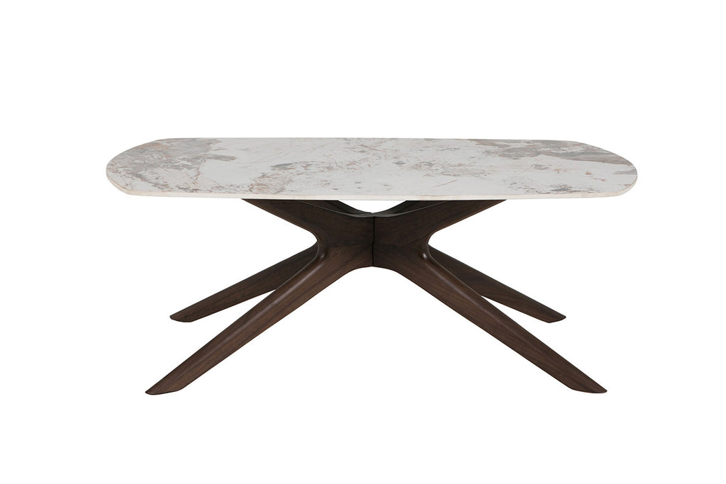 ARYIA SINTERED STONE COFFEE TABLE with mottled brown sintered stone top and dark walnut painted birch wood frame. All Aryia items have anti-bacterial heat, stain & water resistant 'easy-clean' tops. All Aryia furniture items also have a stylish clean minimalist design.