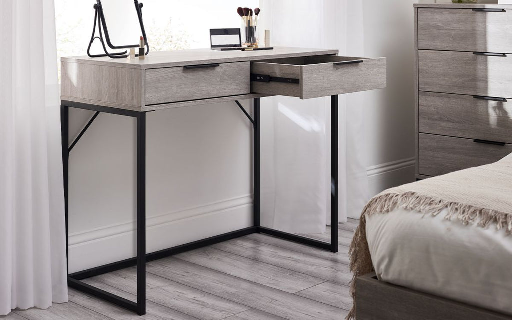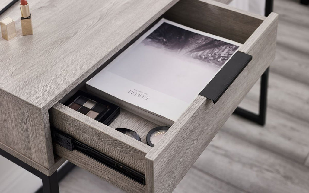 Boasting a captivating grey oak finish, this dressing table/desk exudes rustic charm that effortlessly complements various interior styles, enhancing the sophistication of your bedroom or workspace.