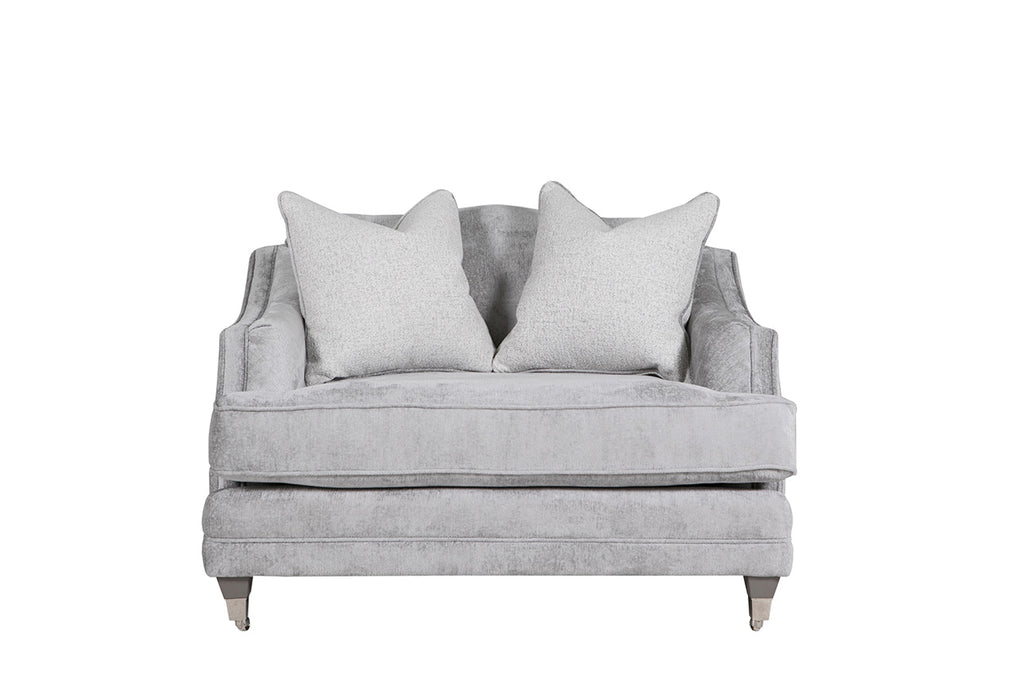 Introducing The Belvedere Snuggle in Silver with 2 scatter cushions – the epitome of elegance for your living space! This snuggle chair is crafted with pride, using a combination of Boucle Fabric, Chenille Fabric, Chrome, Eucalyptus, Feather, Foam, Plywood, Solid Wood, Textured, and Velvet Fabric materials, ensuring both style and quality.
