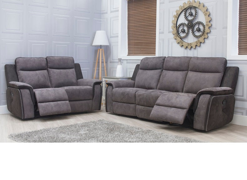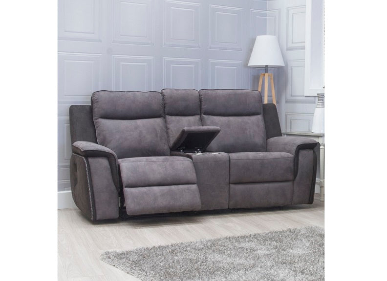 BENETTI SOFA COLLECTION-in charcoal grey 'rhino' fabric with manual reclining action. Includes a three or two seat sofa with optional drinks console, corner sofa and reclining armchair.