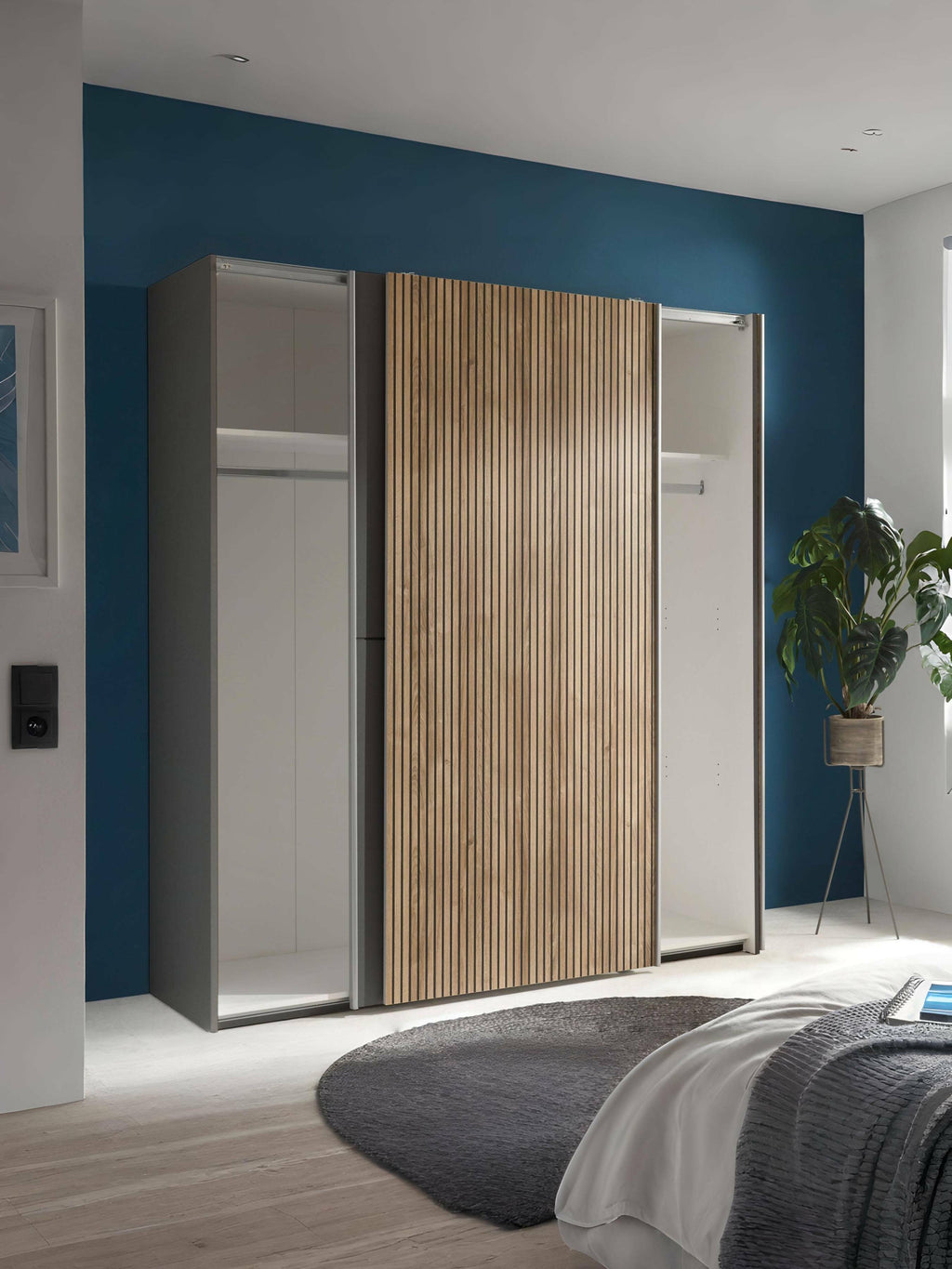Enhance your bedroom with this sleek and space-saving sliding door wardrobe, designed for both style and practicality. Featuring a hanging rail and top shelf on each side for convenient storage. The smooth sliding mechanism ensures effortless access to your belongings while maximizing floor space.