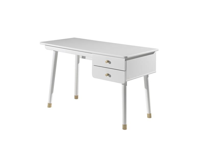 New children's range on Homelinefurniture, The Desk is made from white finished pine & MDF, with light wood strut legs, gold trim and includes two storage drawers. This items will match colourwise with our other Billy white furniture items.