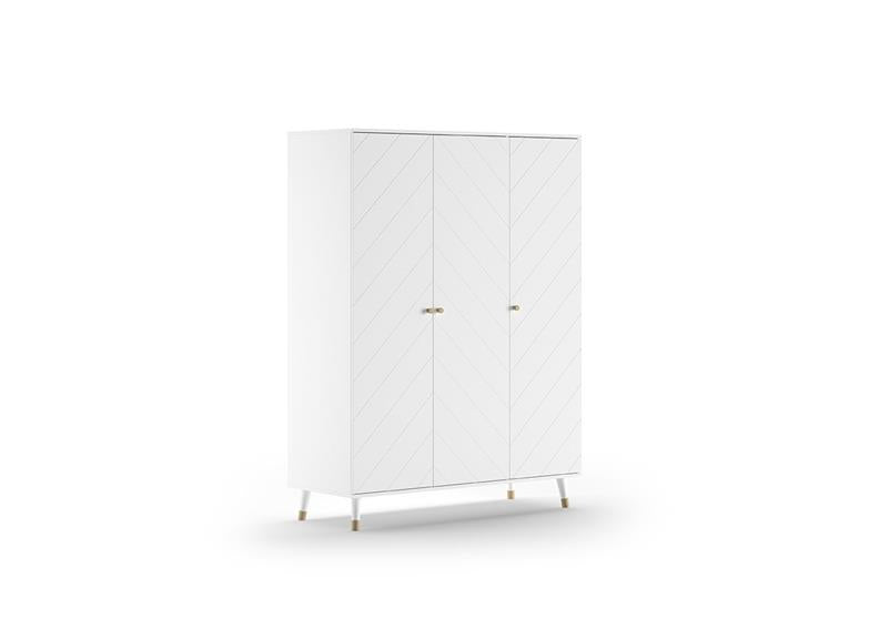 New children's range on Homelinefurniture, The Billy Three Door Wardrobe is made from white finished pine & MDF, with light wood strut legs with gold trim. These children's furniture piece have a chic 'retro' design and match colourwise with our similarly styled BIlly White Beds.