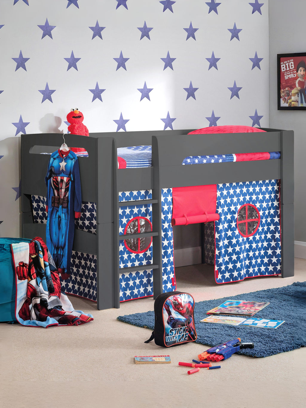 The Pluto Star Tent is available in either pink or blue and is a stylish accompaniment to the Pluto mid-sleeper, creating a fun and vibrant play space.