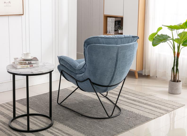 With soft plump chenille fabric upholstery and chic ala mode black wire type metal frames, this chair will be a stand out in your home.
