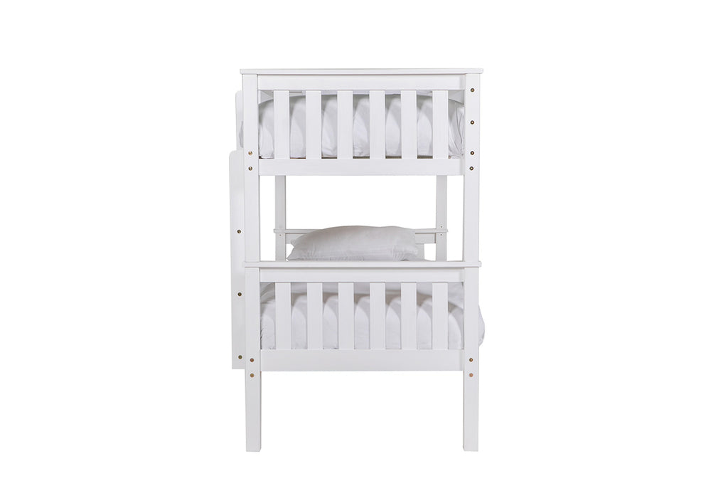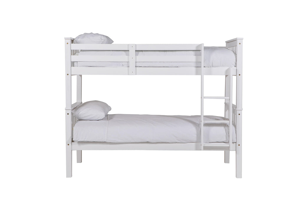 Introducing The Bronson Bunk Bed in White (3' & 3') – a versatile and space-saving solution for your bedroom! This bunk bed is crafted with pride using Pine for durability and style.