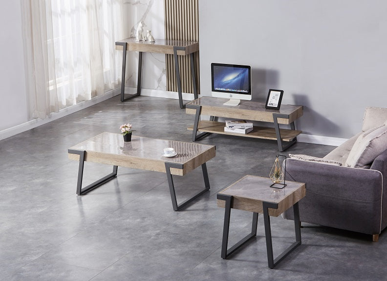 BROOKLYN TV STAND - part of our new Brooklyn Living Occasional Collection featuring smooth grey stone effect tops, MDF side frames and grey metal legs.