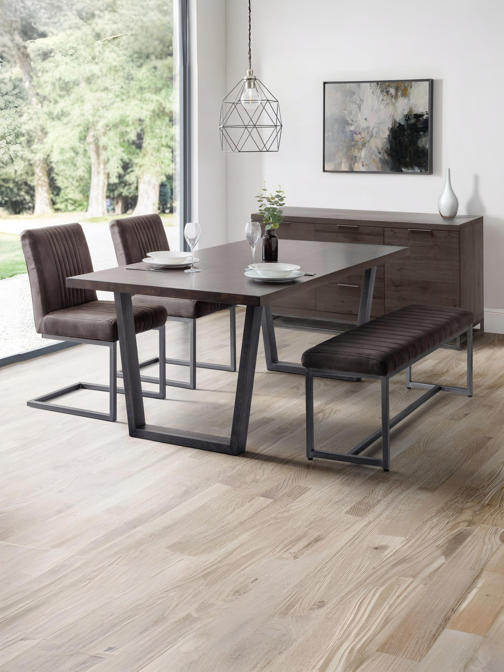 The Brooklyn Upholstered bench brings an industrial, retro design to any dining room. Finished in a charcoal grey suede, upon an industrial style gunmetal frame this bench is the perfect match for the Brooklyn Dining Table. Part of the Julian Bowen Brooklyn Dining and Occasional Collection.