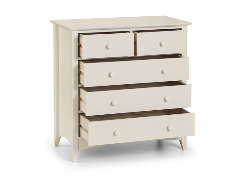The Cameo 3+2 Chest, other matching Cameo Bedroom items available to order in stone white or pale grey colours.
