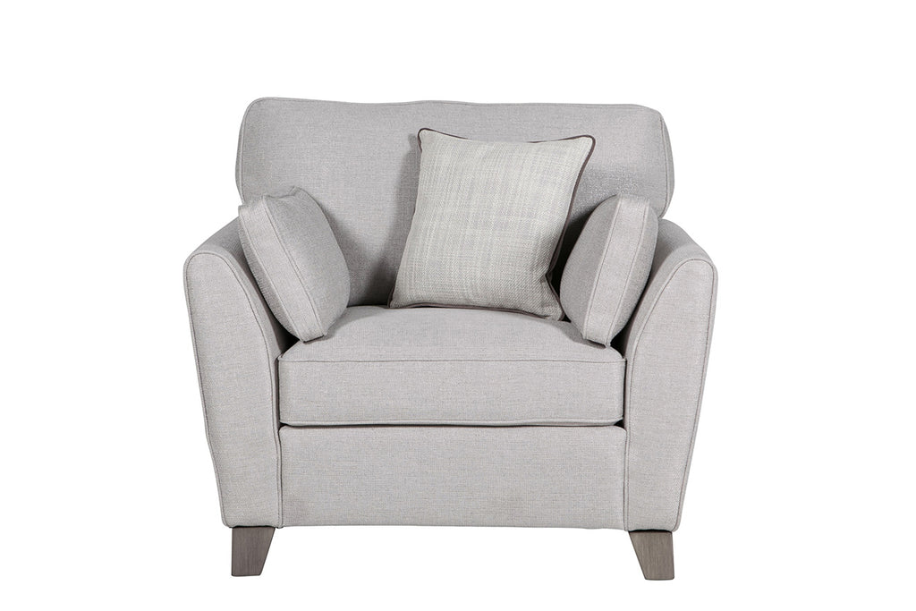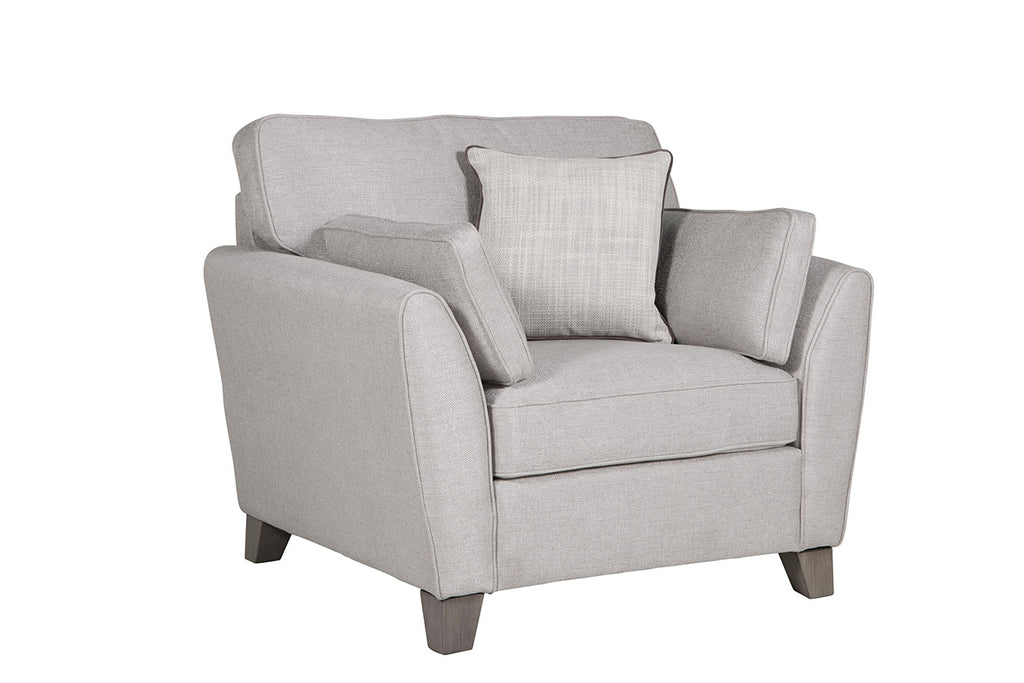 The Cantrell range from Homeline Furniture is available in either Light Grey, Blue or Buscuit fabric and is supported with oak finish legs. You will be able to sit back and relax for the evening on this ranges pocket spring and foam seats.