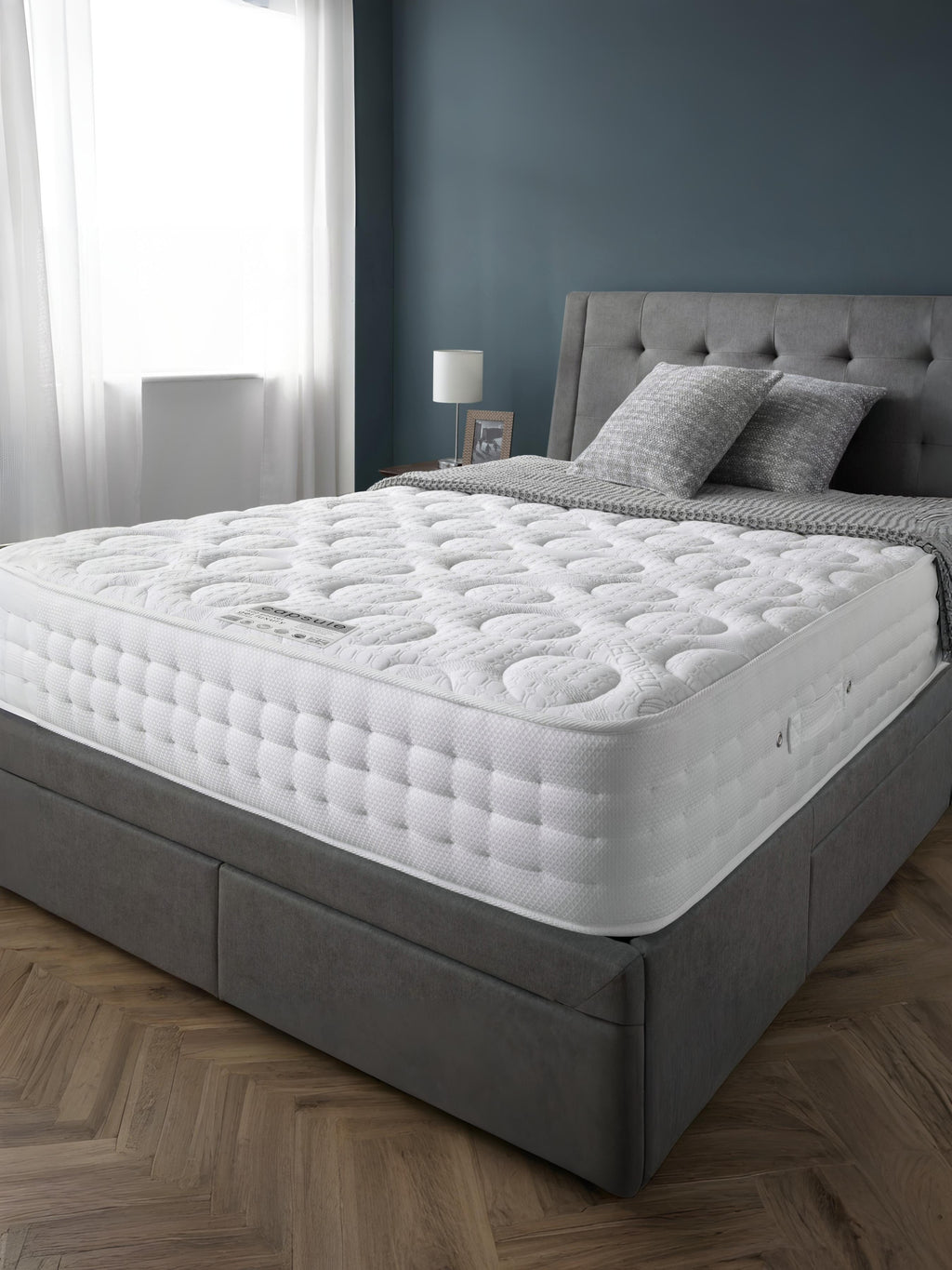 The Capsule Gel Luxury Mattress offers a 1500 pocket spring unit, with foam encapsulated supportive side walls and 30mm cooling gel to help you have a relaxing night's sleep. Finished in a luxury knitted micro-quilted top panel with a quilted border, the Capsule Gel Luxury Mattress features air vents for increased air flow and horizontal handles for easy lifting. Available in 90cm, 135cm and 150cm sizes, this mattress is part of the Capsule Mattress Collection.
