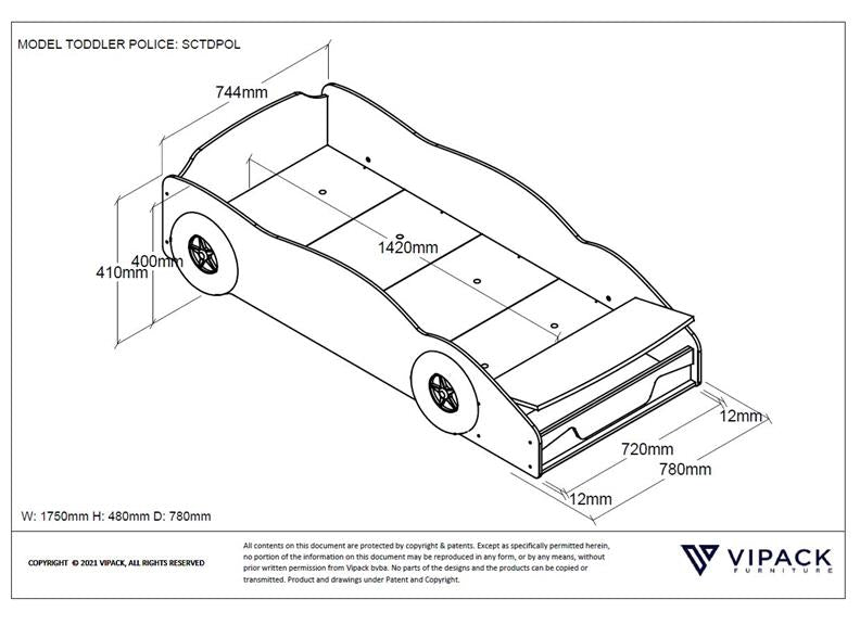 Introduce a sense of fun and adventure to your child's bedtime routine with our Blue Lacquered MDF Toddler Police Car Bed. This playful piece is not just a bed, but also a statement of your little one's budding personality and love for all things exciting.