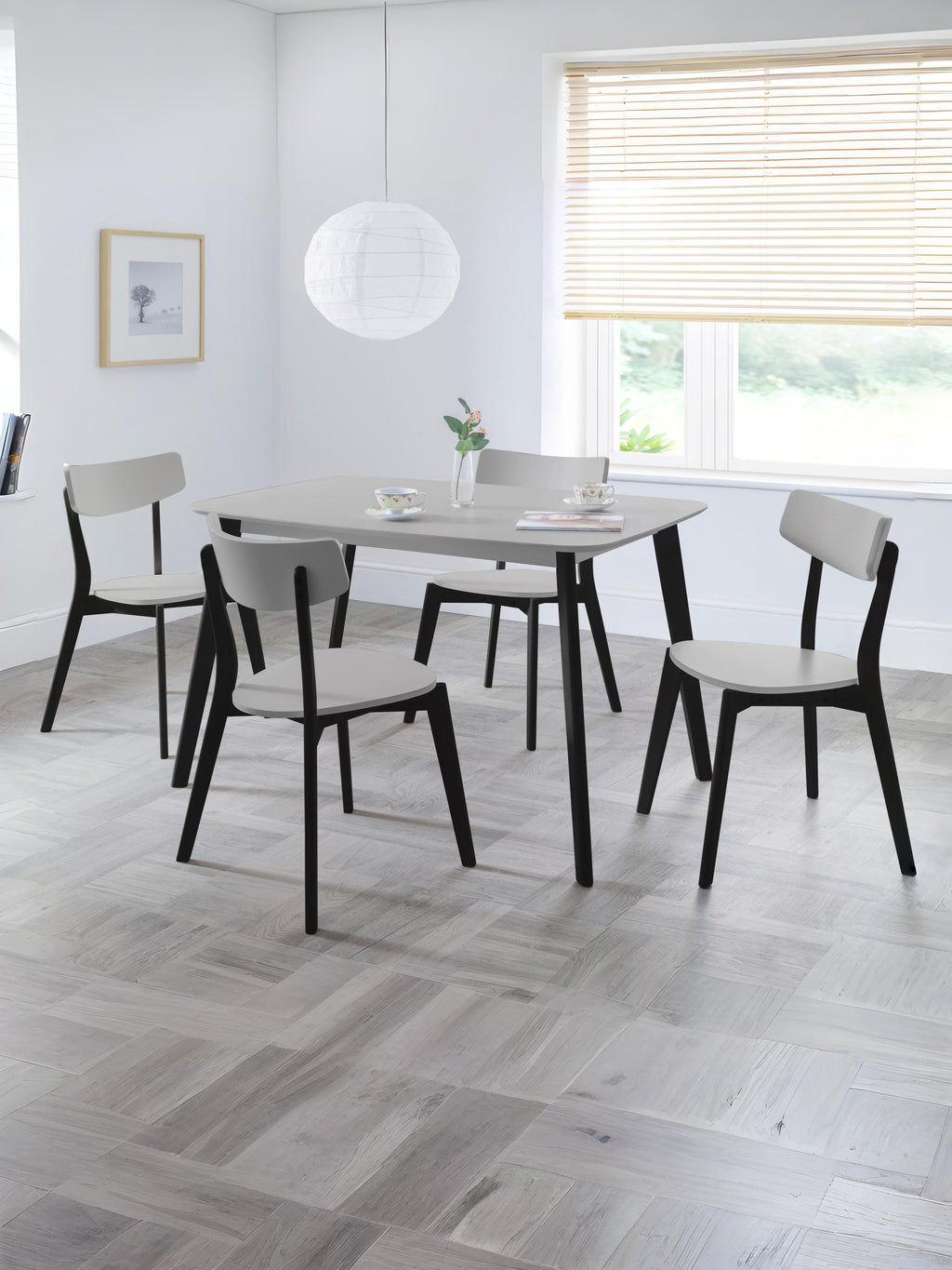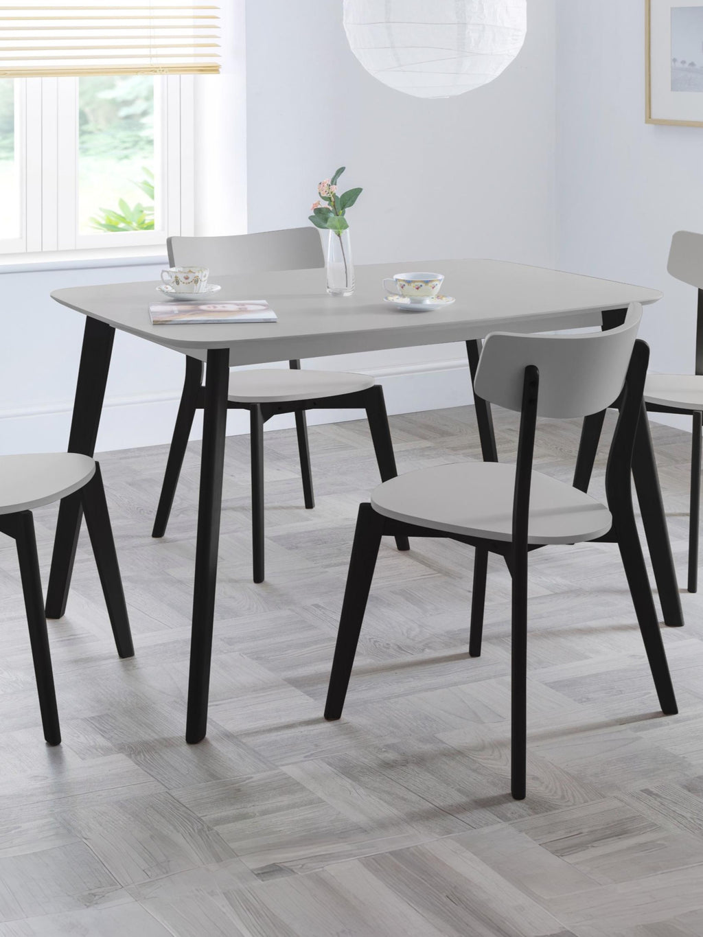 A timeless design reflecting the style of the 1950's combined with modern, contemporary colours. The Casa dining table has a durable grey lacquered top with black legs. Crafted from solid Malaysian hardwood and MDF ensuring long lasting durability.