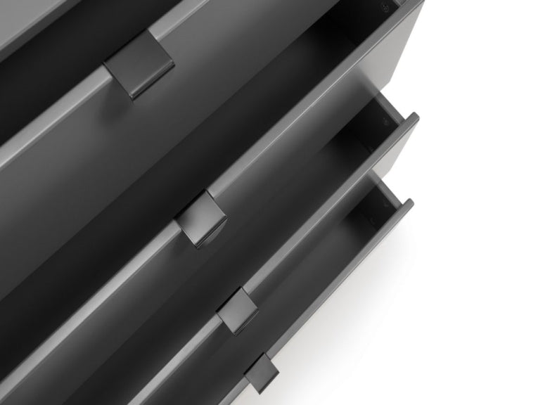 The Chloe Bedroom Collection comes in dark storm grey colouring with rounded corners/edges to create a soft stylish look. All items have an a la mode retro look.