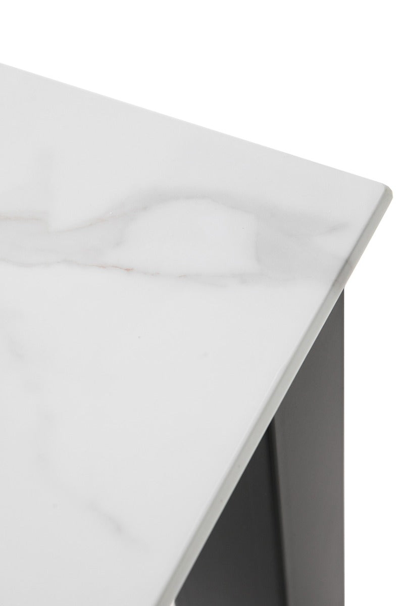 Functionality is key with the Circe collection – featuring a charcoal metal frame and a marble print glass top, this table complements a variety of home interiors, from industrial to chic.