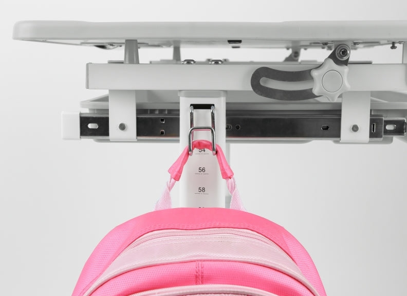 The Comfortline 201 Desk-a new exiting play or study desk complete with height adjustable & tilt able desktop and height adjustable chair, this desk has a bag hook and storage compartments and is perfect for colouring, drawing or homework etc. Made from wood board and plastic with lacquered melamine finish.
