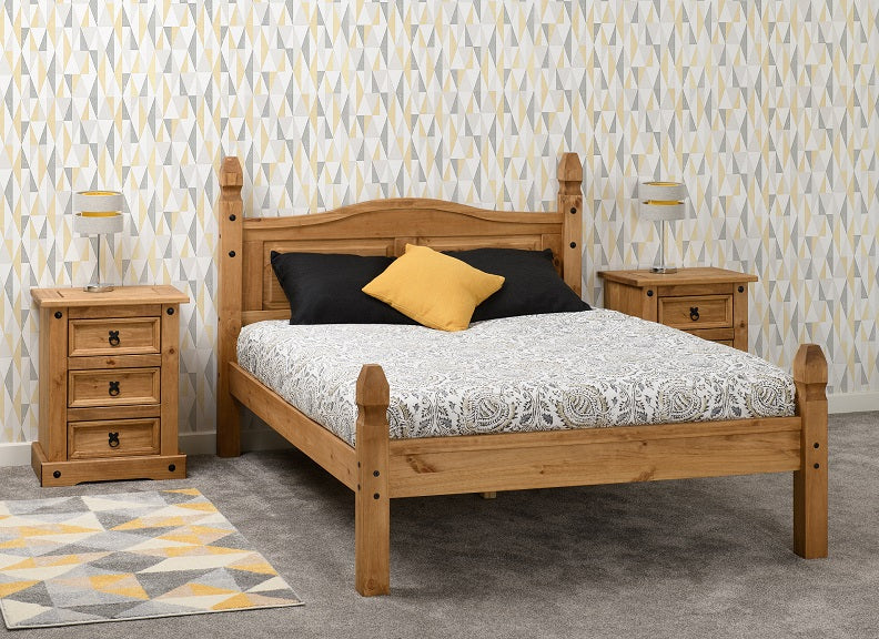 The Corona Pine Low Foot Bed is available in two sizes 3 ft or 4 ft6-select your size and optional matching Durabeds York Mattress.
