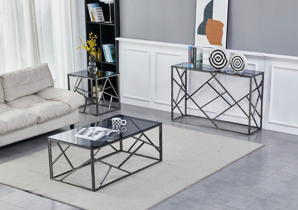 Transform your home into a sanctuary of modern sophistication with our Titanium and Smoked Glass Occasional Collection. Indulge in the fusion of titanium and smoked glass with our Cortez collection and discover the perfect coffee table, end table, or console table that brings elevated luxury into your world Dimensions : H 55 X W 55 X L 55CM Delivery in 3-5 weeks from Homeline Furniture. Some assembly may be required.