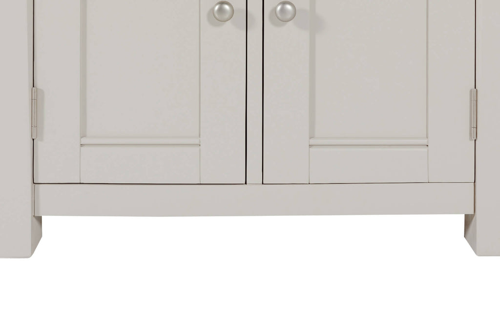 <p>Doune Small Sideboard in Taupe, a versatile addition to any room. This compact sideboard features a stylish painted finish with an elegant oak veneer top. It offers practical storage with two drawers and two doors, plus internal shelving for organised space. The sleek metal handles and balanced design make it both functional and fashionable.</p>