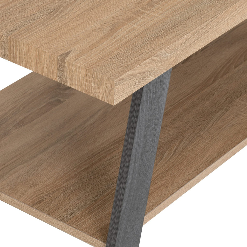 With its angled grey wooden legs and chunky oak effect styled top this occasional table is both stylish and sturdy.