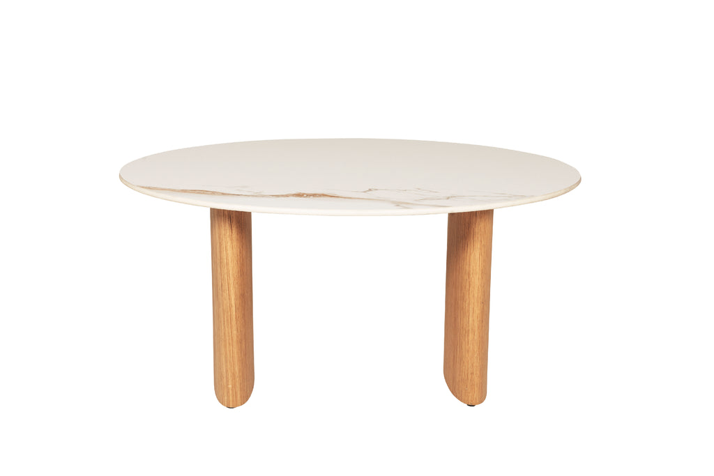 Evie Coffee Table in Sand – a modern marvel designed with soft curved edges, perfect for contemporary interiors. Its sintered stone table and sideboard tops are impervious to heat or cold, ensuring durability and resilience. With waterproof, scratch-resistant, and stain-proof qualities, maintaining its pristine condition is effortless. The non-porous and antibacterial features guarantee easy cleaning. Finished with an oak-coloured base, the Evie Coffee Table is as stylish as it is functional, adding a touch of elegance to any space.