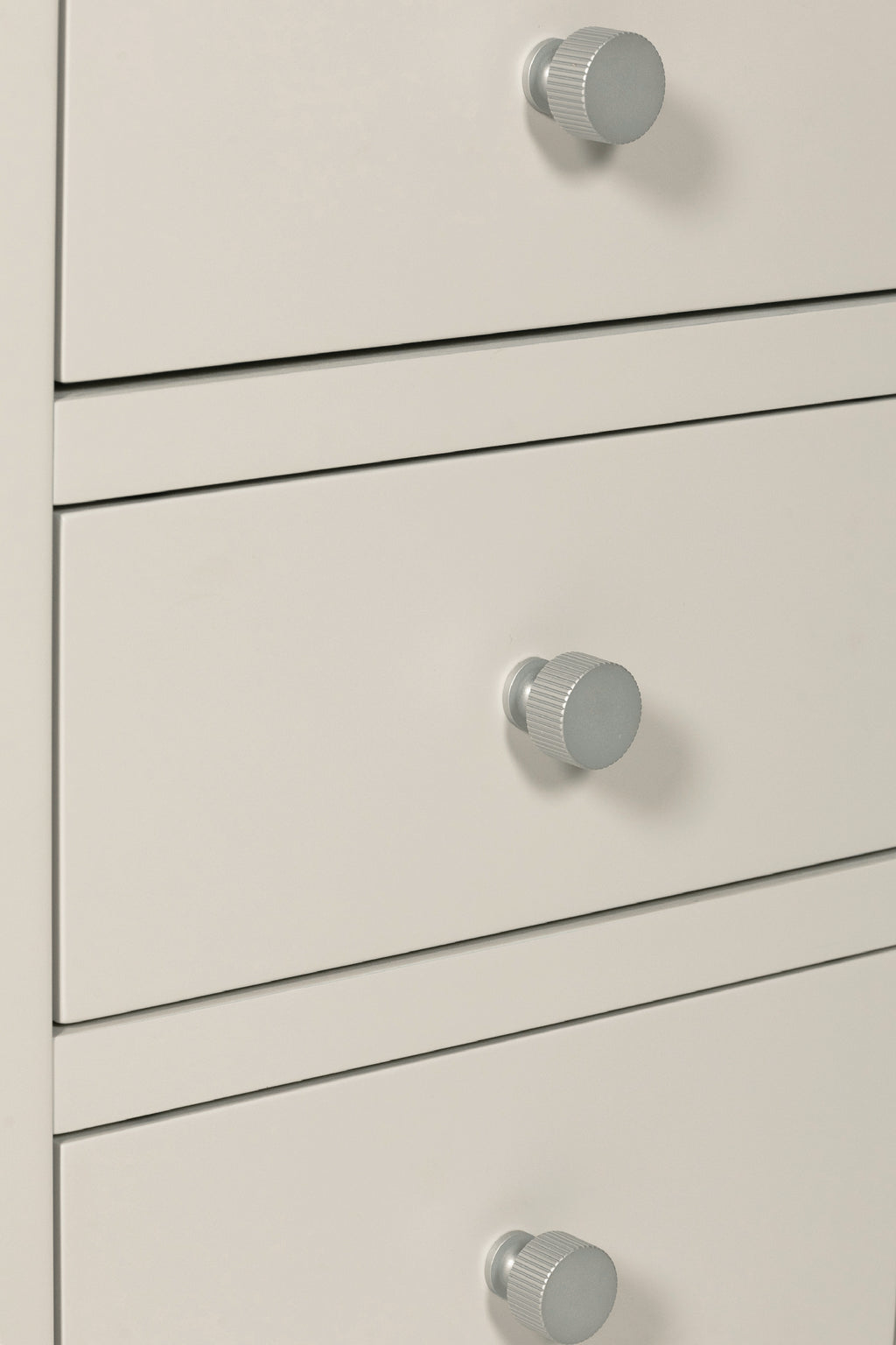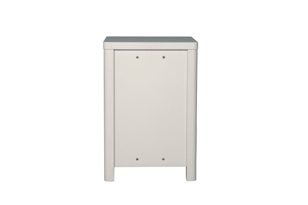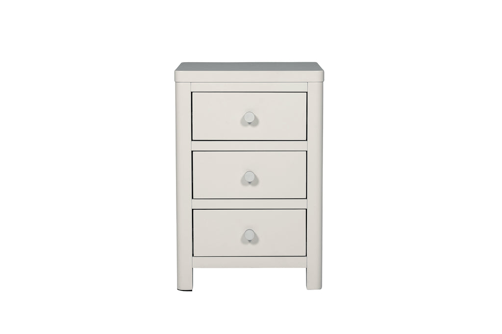 Freya Bedside Table in Natural – a stylish and versatile addition to your bedroom decor. With its soft neutral painted finish, this bedside table effortlessly complements any decor style. Featuring smooth round edges and flush sides and tops, it boasts a clean and modern design that adds elegance to your space. The addition of matte silver round handles adds a touch of sophistication to its aesthetic.