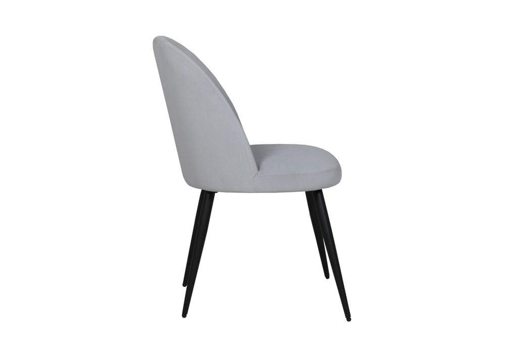 The Gabi Dining Chair adds a vibrant touch to your dining area with its eye-catching color options of Sage Green, Coral, and Silver. Upholstered in soft fabric, the chair offers both comfort and style, while its black powder-coated legs provide a sturdy and modern foundation.