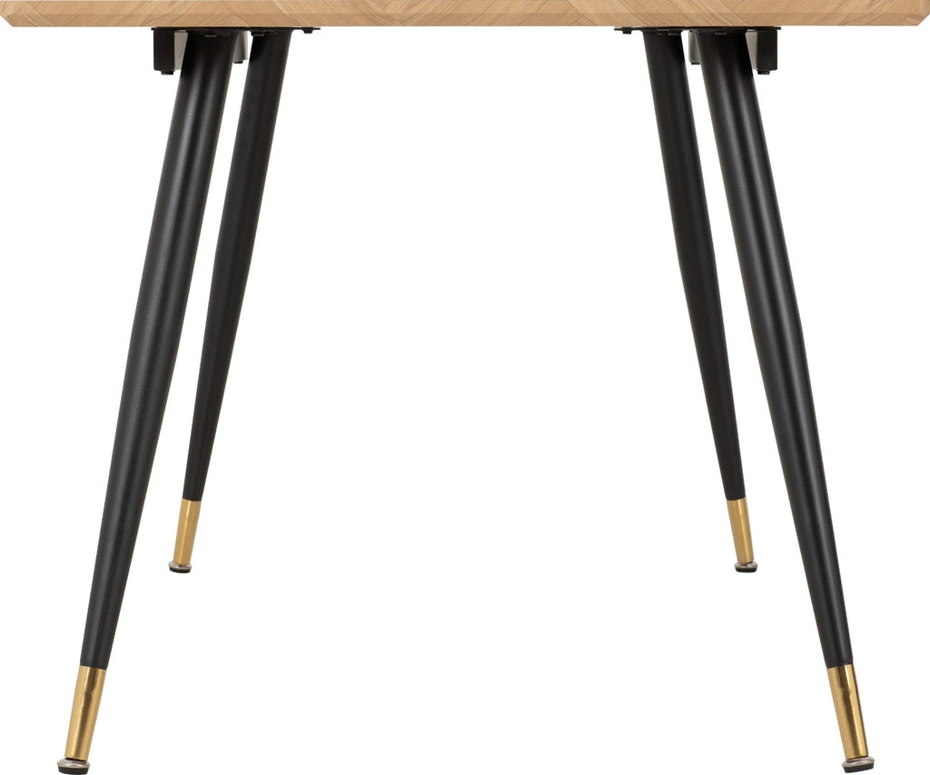 The Hamilton dining table boasts generous dimensions of 1800 W x 900 D x 755 H mm, offering plenty of space for guests. The table is built from sturdy composite board with a premium 3D paper veneer finish, creating a sophisticated and durable surface. The 25mm thick tabletop provides long-lasting strength, while the metal legs with dimensions of W25 x D50mm ensure a solid foundation. With a clearance height of 730mm below the frame, this table offers comfortable legroom for all seated guests.