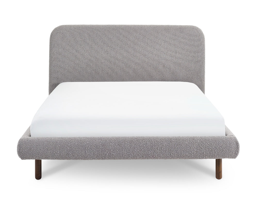 Assembly required. Please note: Mattress is sold separately. Experience the epitome of elegance and comfort with the Hannah Double Bed in Grey Boucle, a statement piece that elevates your bedroom to new heights of luxury.