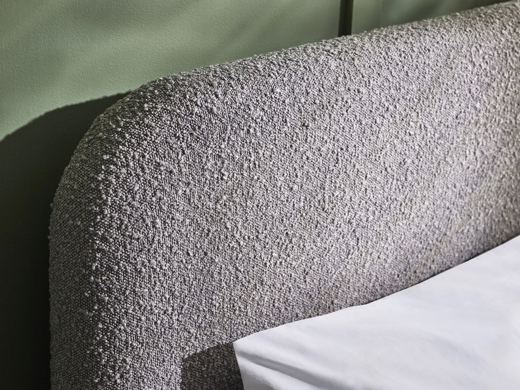 Introducing the Hannah Double Bed 135cm in Grey Boucle—a fusion of sophistication and comfort that redefines your bedroom aesthetic. Elevate your sanctuary with this exquisite piece, where style seamlessly intertwines with relaxation. The luxurious grey boucle upholstery not only exudes opulence but also promises a soft and inviting feel. The bed's curved silhouette adds a visually striking profile, infusing your space with a contemporary flair. Beyond its functional purpose, this bed doubles as a work of art, transforming your bedroom into a haven of elegance. Please note, mattress is sold separately.