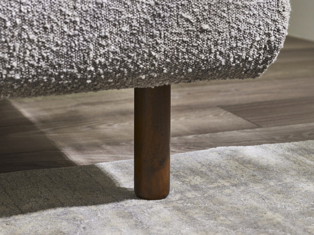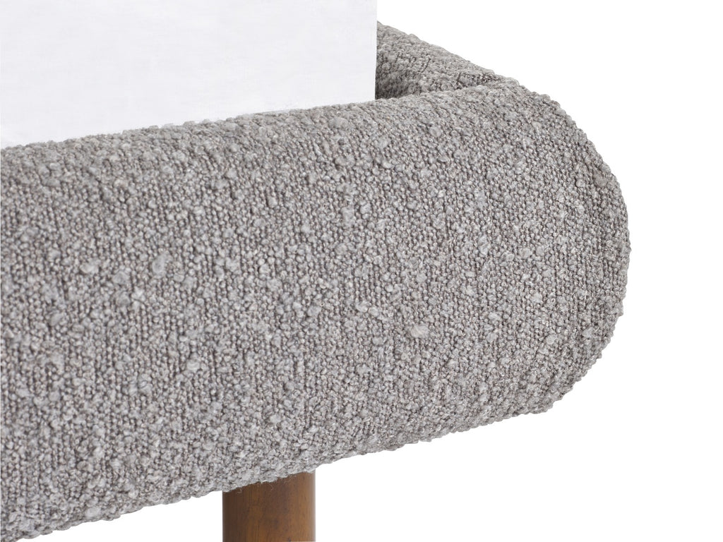 - Indulge in luxury with plush grey boucle upholstery for a cosy feel