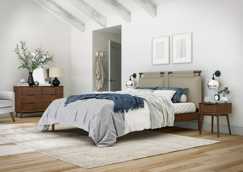 Transform your bedroom with the Harley 4'6" Bed, a perfect fusion of Mid-Century modern aesthetics and Scandinavian simplicity. Crafted from stunning Acacia wood and featuring black streamline handles, this bed is a testament to sophistication. The warm coffee stain finish enhances its visual appeal.