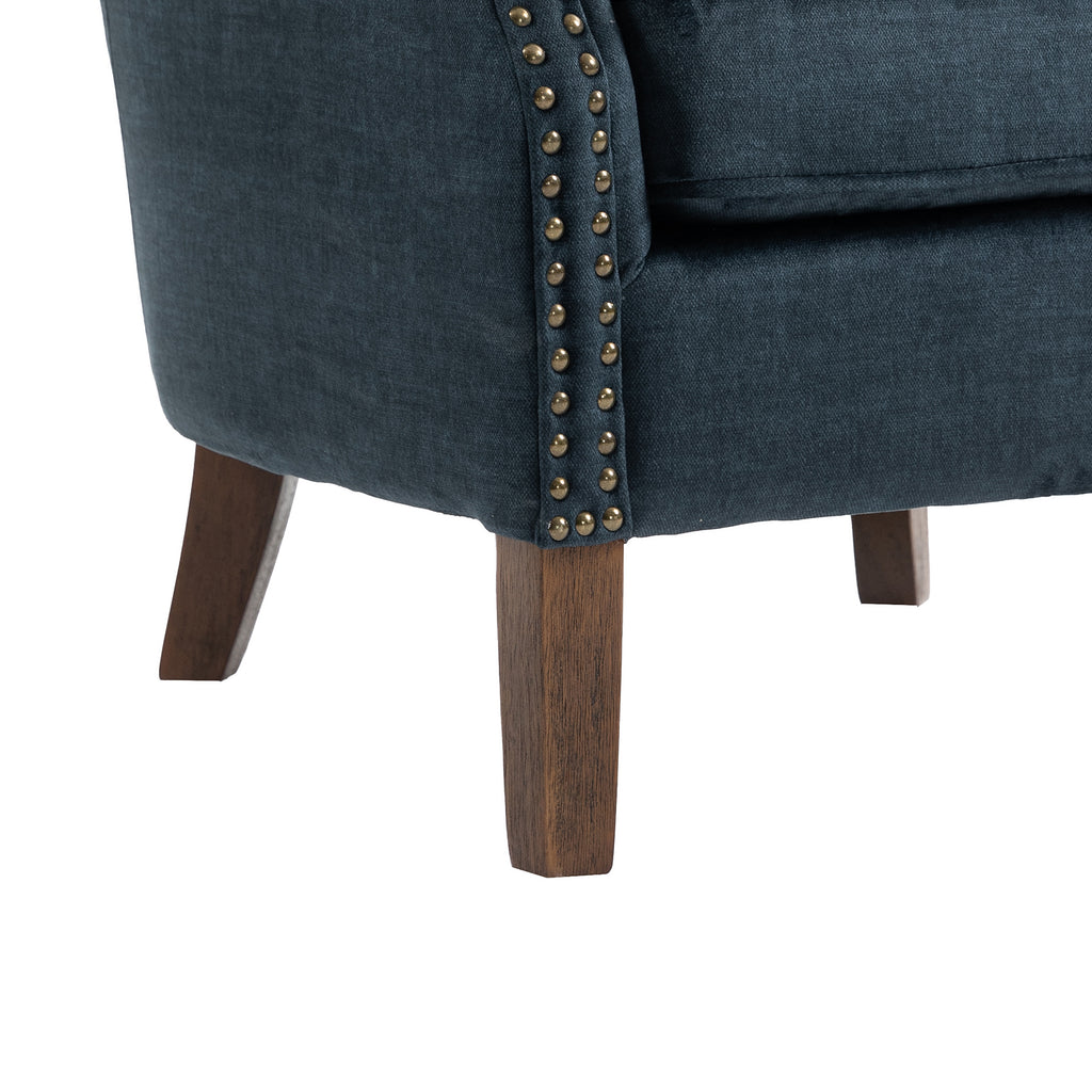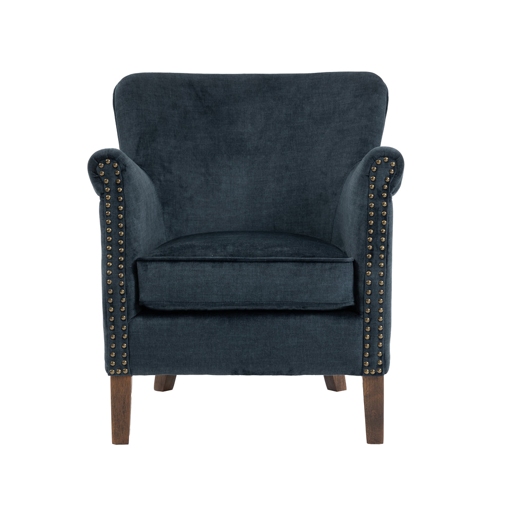This chair is the ultimate master of traditional elegance with a bold, contemporary edge. It is a timeless "anchor" piece designed to bring a sense of established luxury to your favourite reading nook or formal living space. Featuring a classic silhouette and meticulous brass-toned studding along the arms, this accent chair bridges the gap between old-world charm and modern vibrance. Whether you choose a rich leather-look or a plush velvet-style fabric, it’s a chair built for those who want to "sit bold".