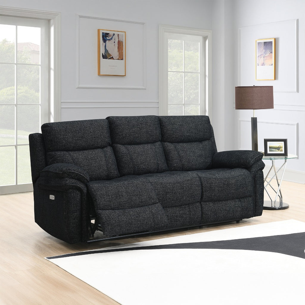 Introducing our Harrow Electric Reclining Suite, where modern design meets ultimate comfort. Available in three on-trend colours – Dark Grey, Light Grey, and Black each piece is crafted with luxurious fabric featuring a subtle speckled detail running throughout for added texture and style. Experience ultimate relaxation at the touch of a button, with smooth electric reclining for effortless comfort. Plus, the built-in USB port keeps your devices charged and within reach