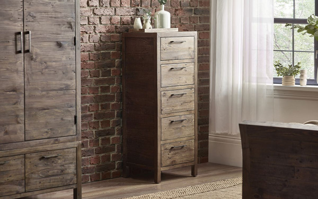 Add a touch of rustic charm to your bedroom with the Heritage 5 Drawer Tallboy.