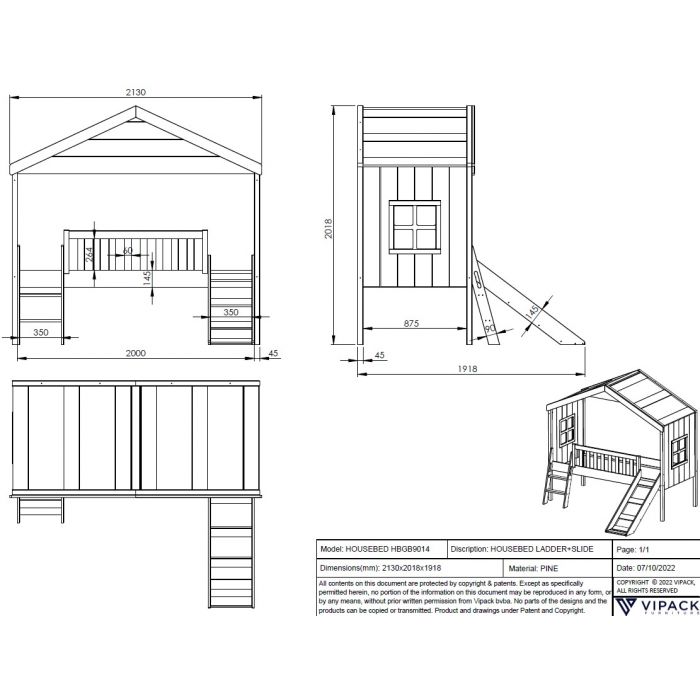 **HOUSEBED- Scandinavian Pine and MDF Bed with Slide and Ladder (90x200)** Introduce a playful and practical addition to your child's room with our HOUSEBEDS Scandinavian Pine and MDF Bed. This bed, designed with a sleek and minimalistic style, offers a blend of functionality and trendiness that fits perfectly into any interior decor. - Crafted from high-quality Scandinavian pine and MDF in a clean white finish - Features a fun slide and sturdy ladder for easy access - Incorporates a slatted design on the back and sides for added style and safety - Provides ample under-bed storage space for toys or additional items - Designed with a modern aesthetic that complements a variety of room styles **Delivery and Dimensions: Free nationwide delivery from Homeline Furniture in 3-5 weeks. Dimensions - 213 L x 191.8 W x 201.8 H cms**