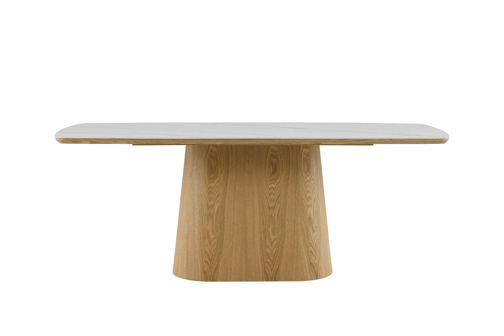 Indy Rectangle Dining Table 2000 in Sand is an ideal choice for both minimalist spaces and family homes, offering everyday strength and durability. Its contemporary design features a stunning marble pattern ceramic top that's not only stylish but also easy to clean, making it perfect for daily use. The sturdy wood veneer base adds a warm, natural touch, ensuring this table blends seamlessly with modern decor.