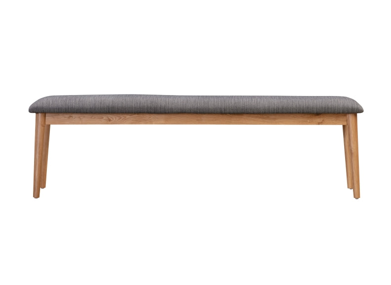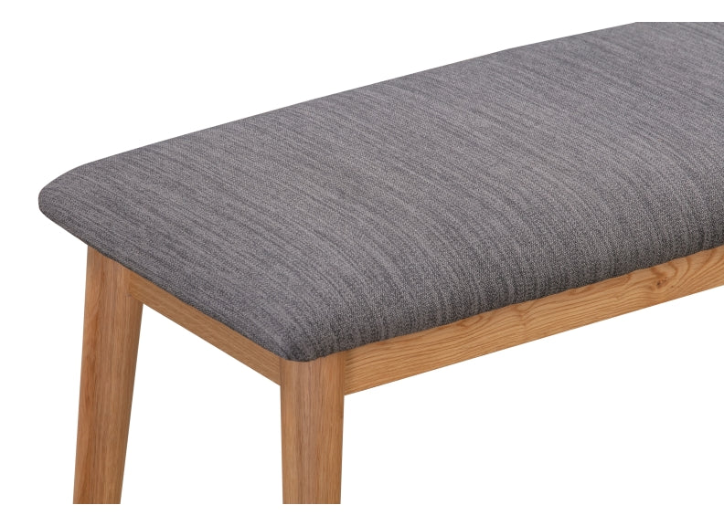 JENSON DINING BENCHES, with grey fabric padded seats.
