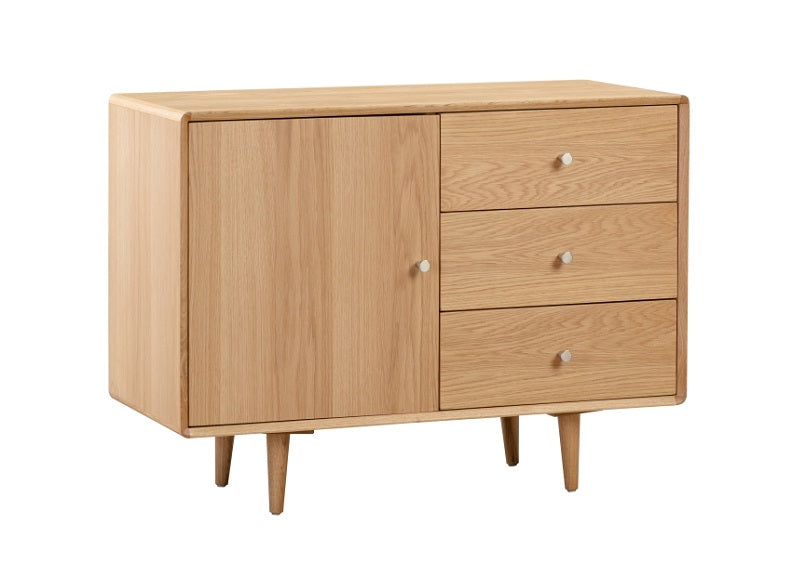 JENSON SMALL SIDEBOARD WITH CUPBOARD & THREE DRAWERS.