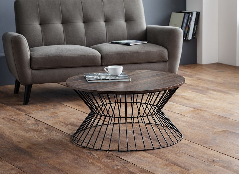 The Jersey Coffee Tables have black wire frames and choice or walnut or oak tops, creating a stylish industrial retro look.