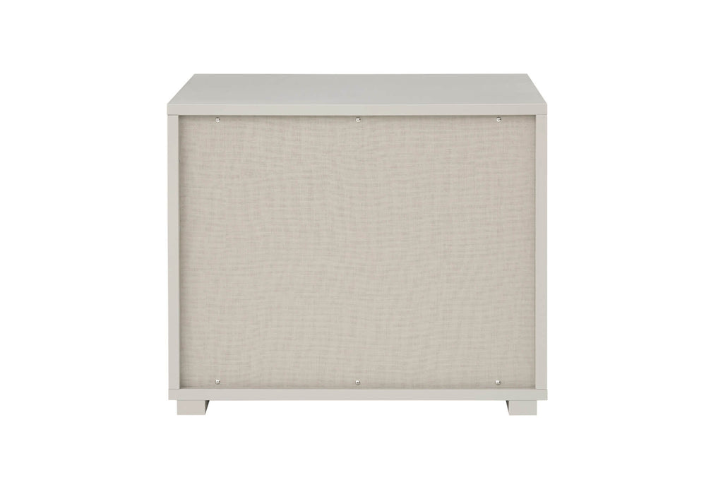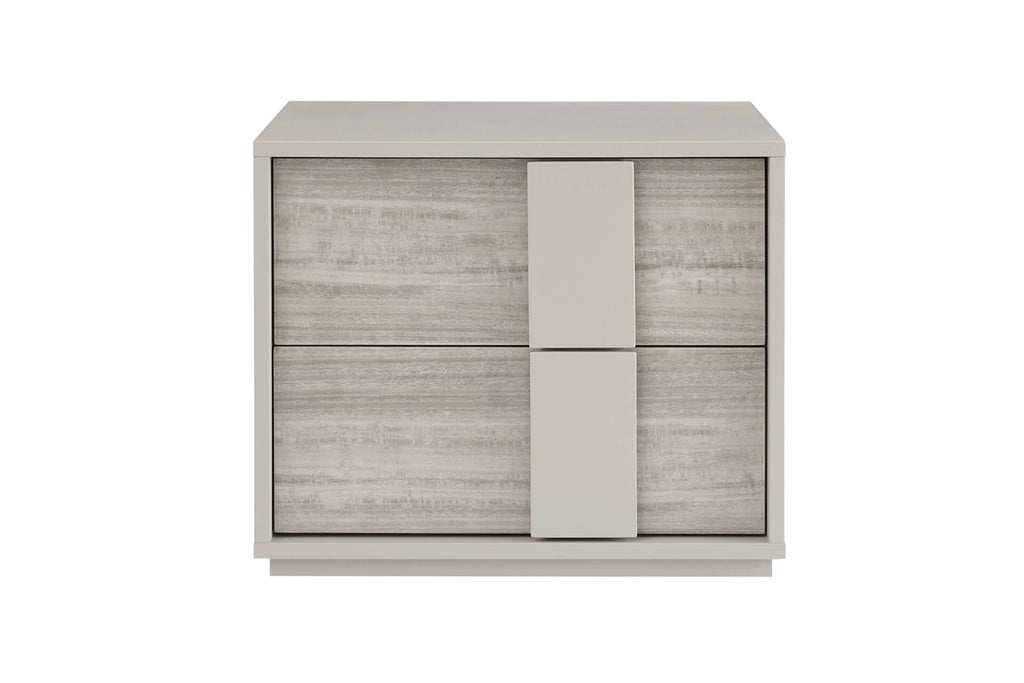 Jules 2-Drawer Bedside Table in Grey combines modern design with practicality. Featuring a gloss wood effect and matt painted finish in contrasting colours, it adds a stylish touch to any bedroom. The soft-close mechanism ensures smooth, quiet operation, making it both functional and elegant for your bedside storage needs.