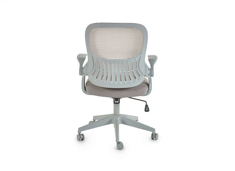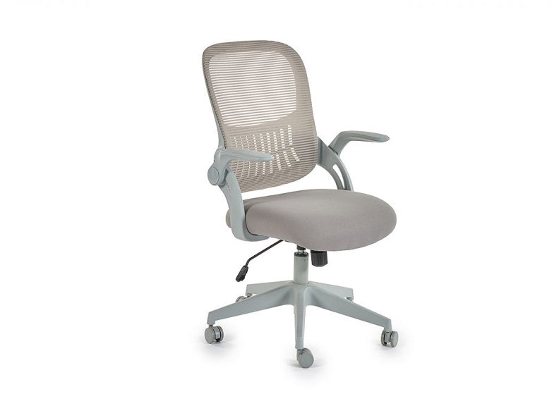 JUNO OFFICE CHAIR with mesh fabric covering, stylish design, ergonomically crafted, wheeled base adjustable tilt & height, flip-up armrests and lumber support. This attractive office chair can elevate anyone's work area.