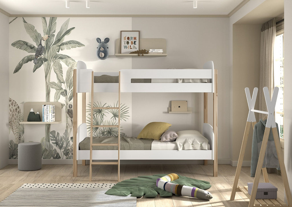 Crafted in an elegant white finish with natural wood accents, the Kiddy Bunk Bed seamlessly fits into any décor, offering a timeless and versatile look. The upper bunk is easily accessible via a sturdy wooden ladder, designed with safety in mind. Rounded corners and smooth edges enhance safety, ensuring peace of mind for parents.