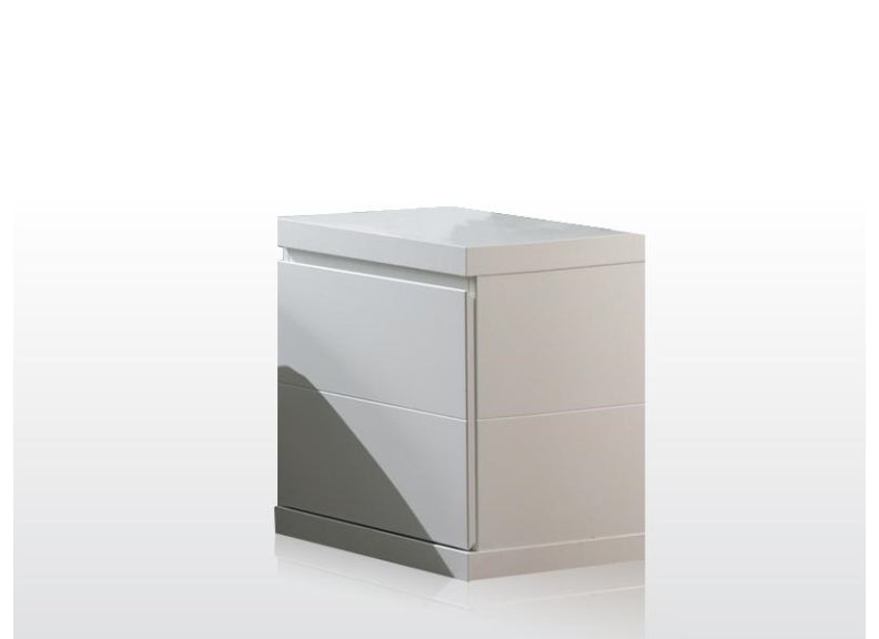 Lara Bedside Locker with softclose door and a smotth white lacquered frame and sharp clean lines.