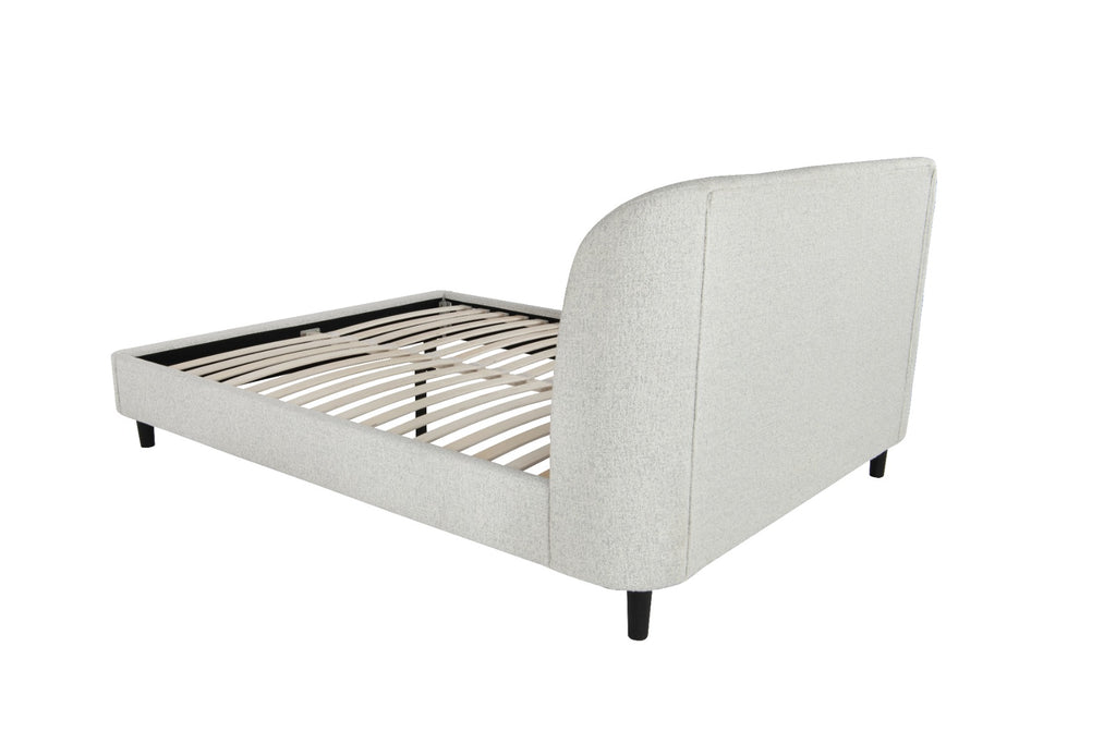 The Layla Bed is modern and stylish. Featuring an asymmetrical curved headboard that adds a contemporary style to your bedroom. Sprung slats provide support for your mattress. Comes in a Light Grey Boucle fabric.