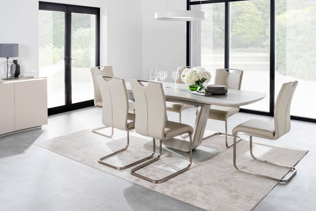 <p>The Lazzaro is a smooth, inviting dining & occasional collection featuring a glass top on tables and MDF base. Cabinet items are enhanced by LED lights, adding atmosphere to your dining or living room.</p>